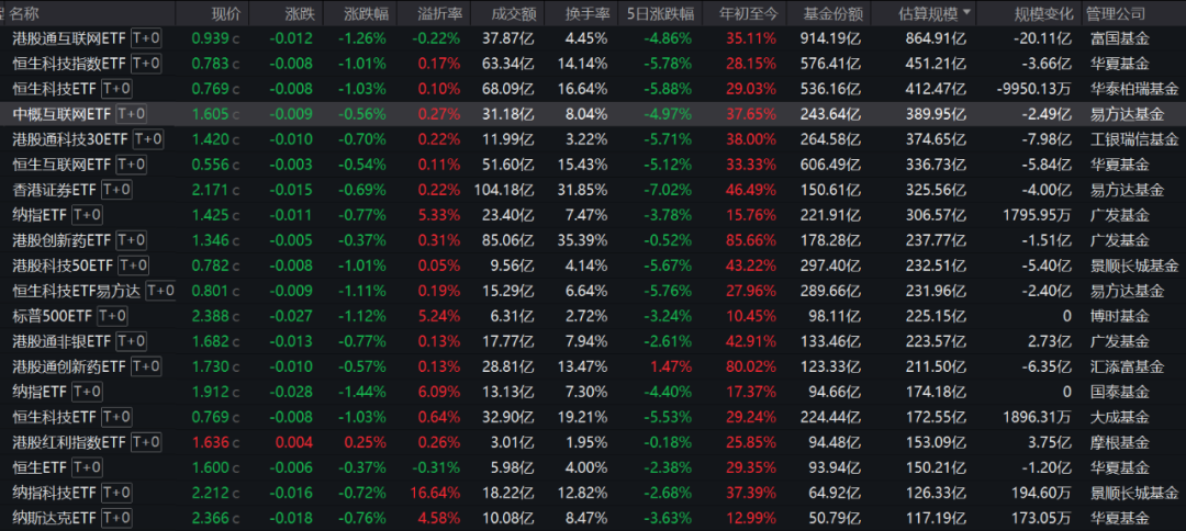 從單只規(guī)模看,目前有24只跨境ETF規(guī)模在100億元以上,以聚焦港股和美股市場的產(chǎn)品居多。其中,港股通互聯(lián)網(wǎng)ETF以逾850億元的規(guī)模位居第一,緊跟其后的是恒生科技指數(shù)ETF、恒生科技ETF,規(guī)模均在400億元以上。此外,中概互聯(lián)網(wǎng)ETF、納指ETF規(guī)模均在300億元以上。