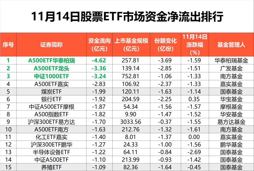 寬基ETF凈流出居前,中證A500指數凈流出超24億元